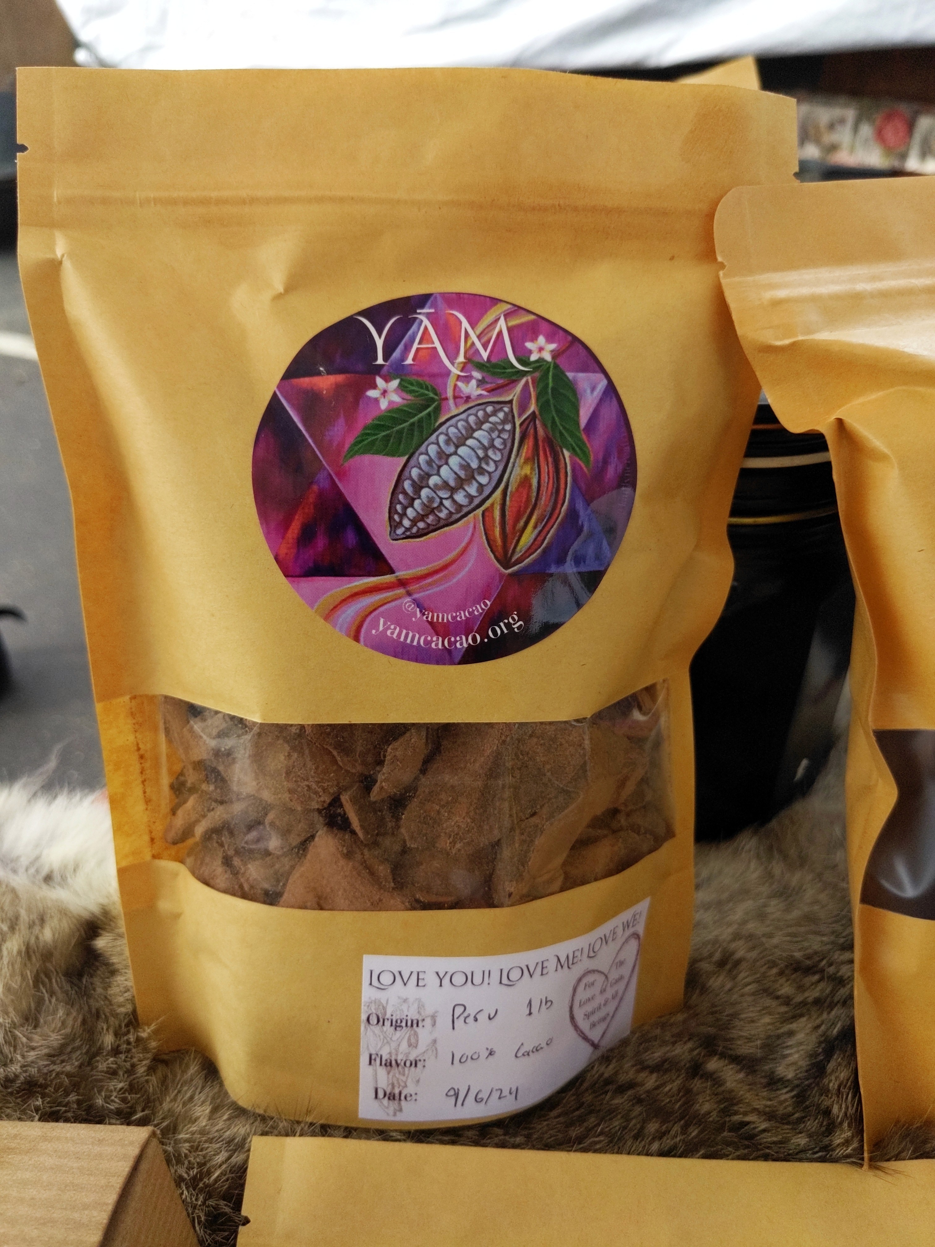 Our core offering is a regenerative, organic, polyculture-grown cacao sourced from a collective of small-scale farmers in San Martin, Peru. This potent medicine was the very seed of Heart YAM. We offer our cacao in 1lb and 5lb Bags for those who work it as a daily ritual or with community. This cacao is fabulous for both drinking and making raw cacao truffles. We recomend welcoming in the spirit of cacao with grace and humility as you consume, offering grace, surrending to her grace, and allowing her to guide you in the continued blossoming of youre heart.